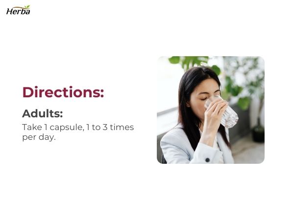 A. Adults can take 1 capsule, 1-3 times per day. You can take the capsules with or without food, depending on your preference. With 90 capsules per bottle, you'll have a 30 to 90-day supply depending on your chosen dosage.