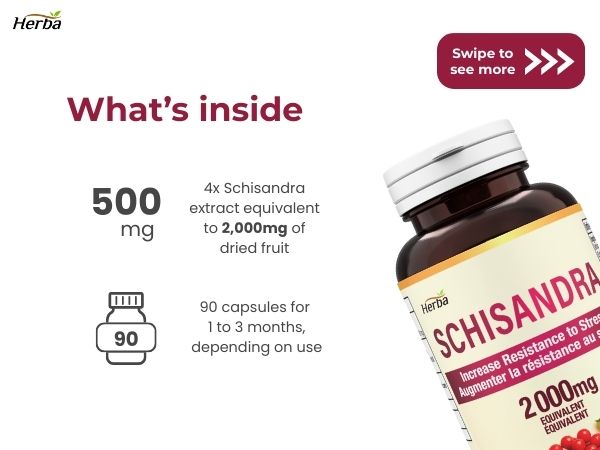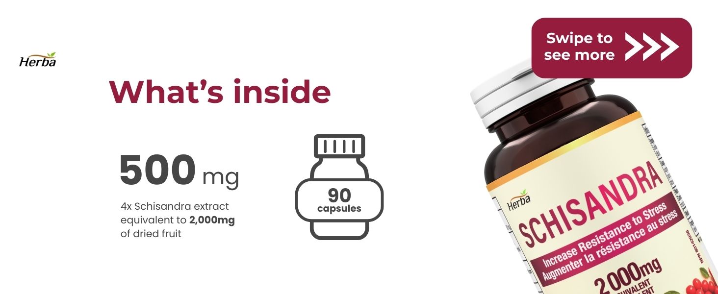 A. Our Schisandra supplement uses a 4:1 extract ratio, meaning each 500mg capsule is equivalent to 2,000mg of dried Schisandra fruit. This concentration process removes water and inert materials while preserving the beneficial compounds, giving you a more potent product in a convenient capsule form.