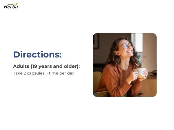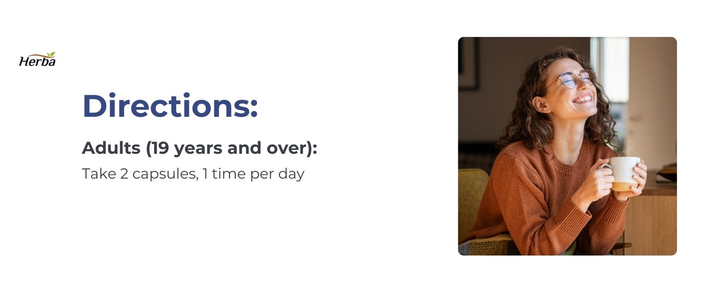 A. La direction recommandée pour les adultes (19 ans et plus) est de prendre 2 capsules, 1 fois par jour. Cela fournit un dosage quotidien total de 100 mg de phosphate de pyridoxal 5'-phosphate.