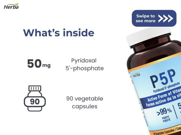 A. La vitamine B6 ordinaire se présente généralement sous forme de pyridoxine, qui nécessite le foie pour la convertir en une forme active. Herba™ P5P utilise le phosphate de pyridoxal 5'-phosphate, qui est la forme coenzyme "active". Cela signifie qu'elle est déjà dans l'état dont le corps a besoin pour les processus biologiques, ce qui la rend hautement biodisponible sans nécessiter de conversion.